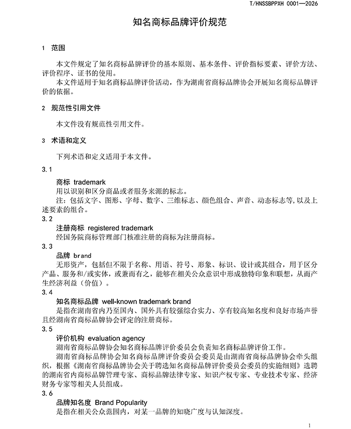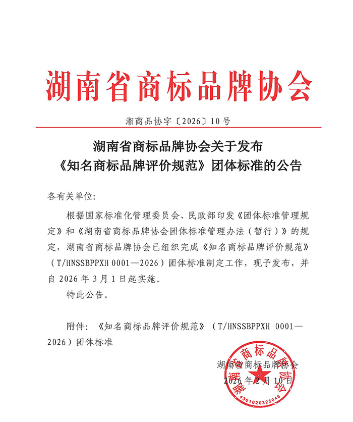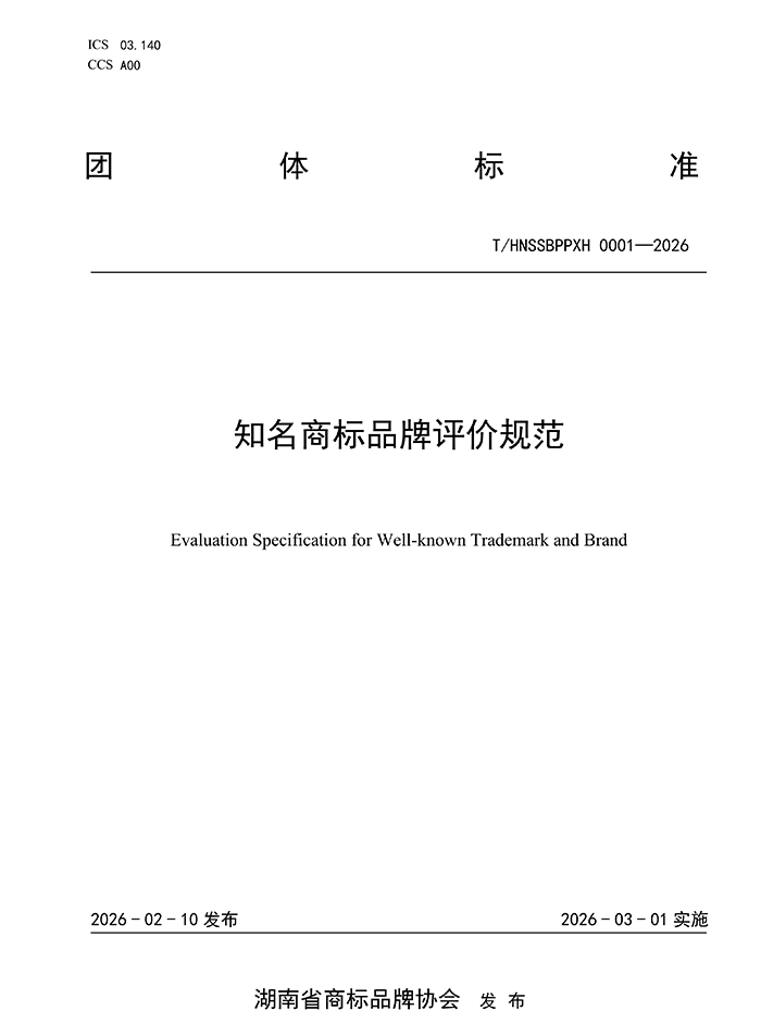 湖南省商标品牌协会关于发布《知名商标品牌评价规范》团体标准的公告